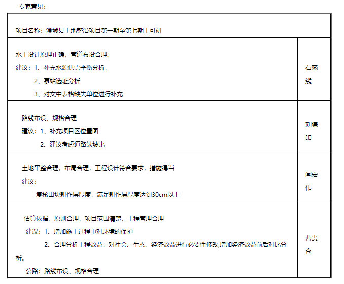經(jīng)專家組集體討論,認(rèn)為澄城縣土地整治項(xiàng)目第一期至第七期工可研報(bào)告編寫合理,數(shù)據(jù)準(zhǔn)確。原則通過。